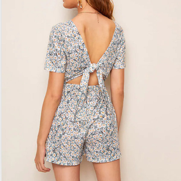 Sexy Backless Short Sleeve High Waist Printed Romper