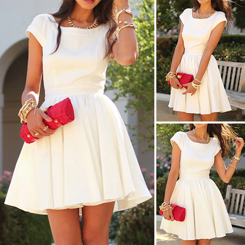 Solid color style,outfitted with short sleeves,round neckline and high waist design. Plus,its