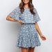 Sexy Backless Short Sleeve Round Neck Printed Dress