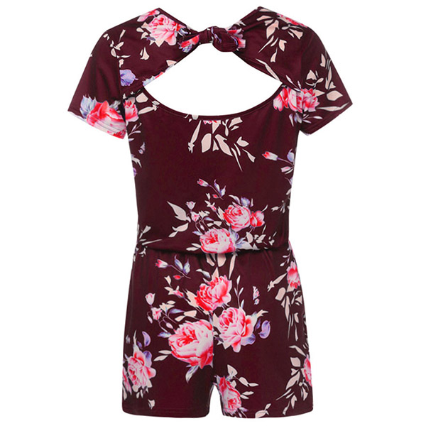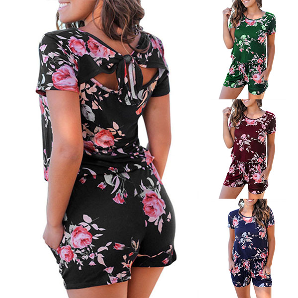 Sexy Backless Short Sleeve Round Neck Printed Romper