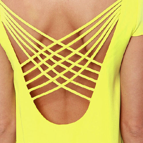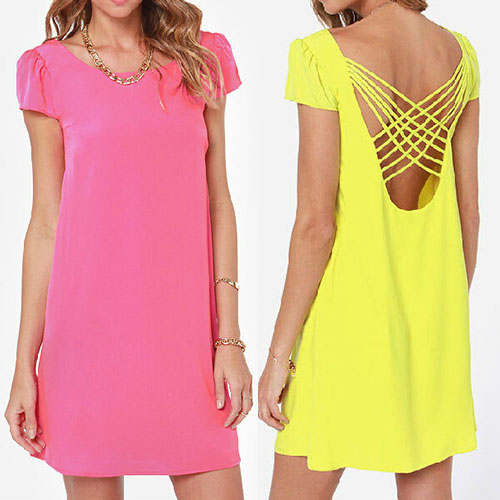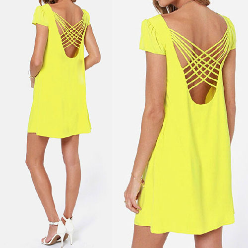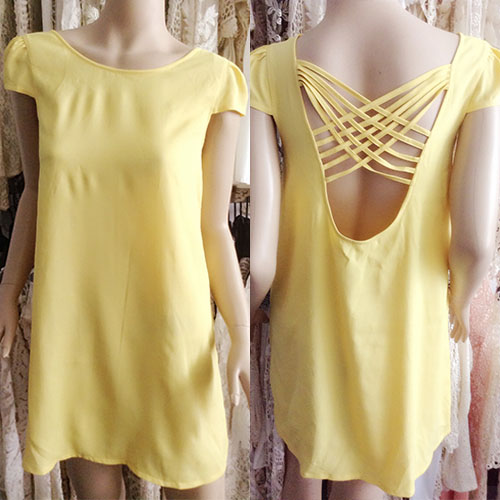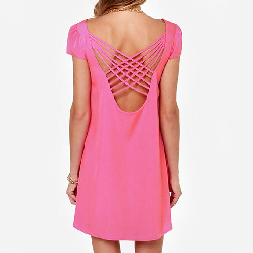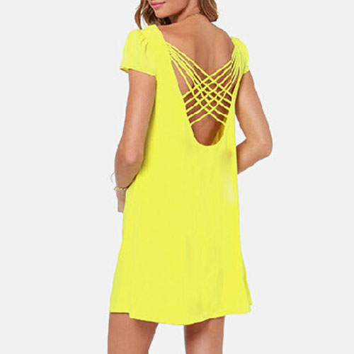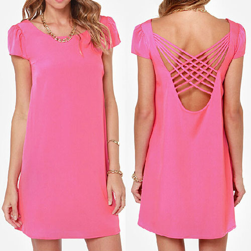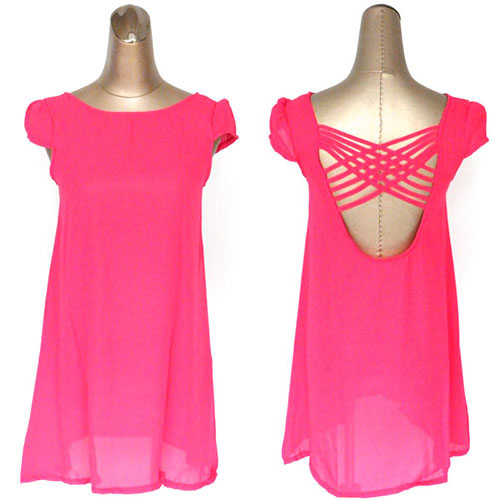 with crossover backless design,chic and sexy. Short sleeve,round neck and skin-friendly chiffon fabric
