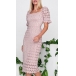 Sexy Backless Short Sleeve Slit Lace Bodycon Dress