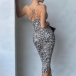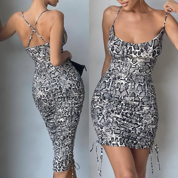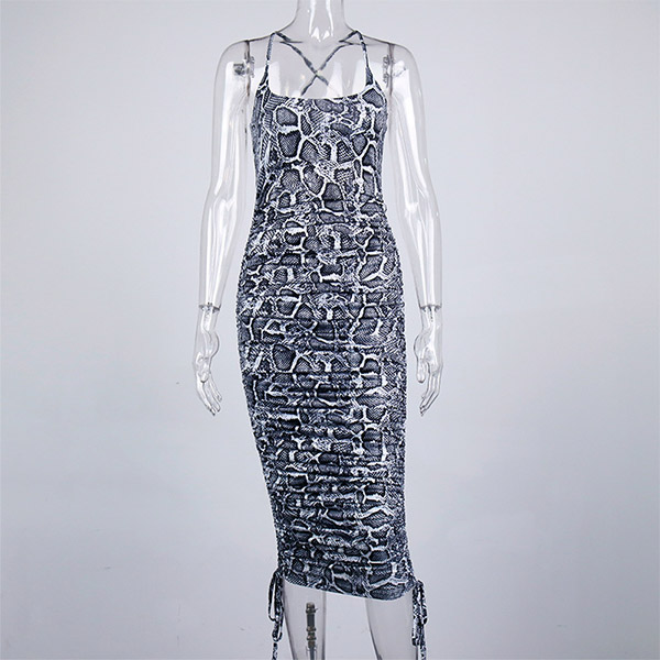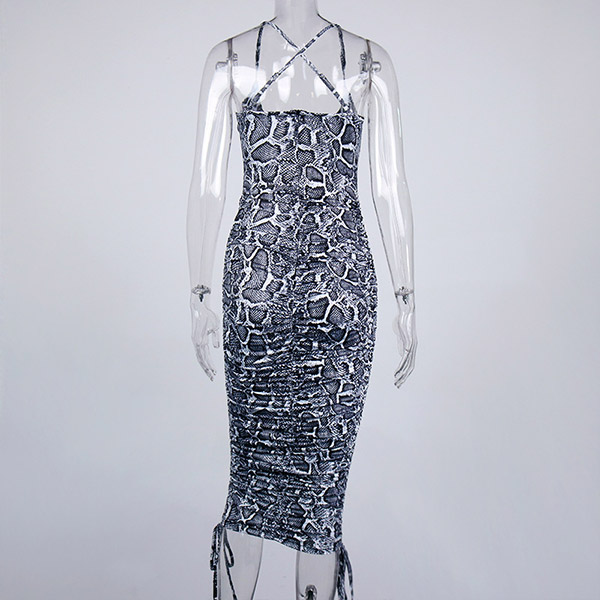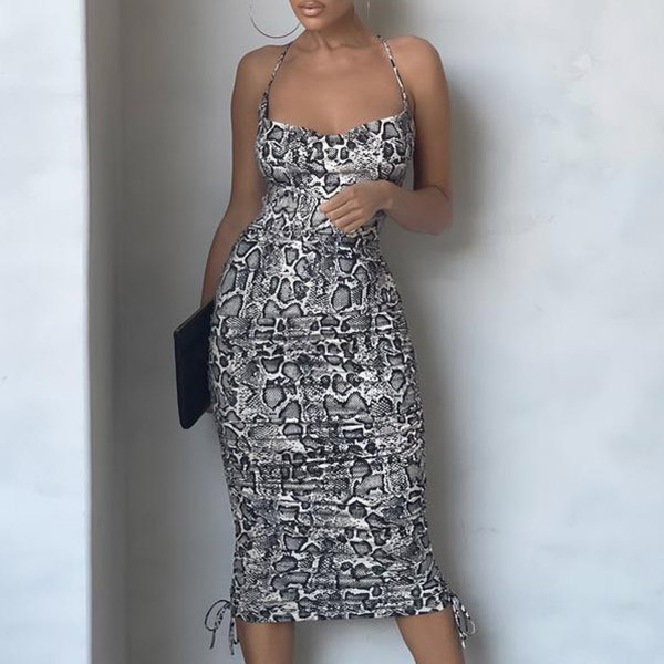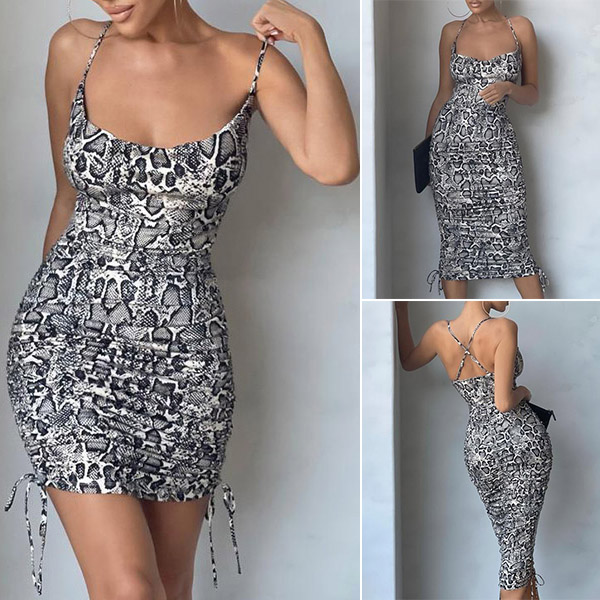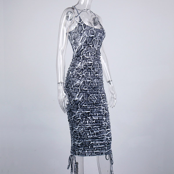 Sexy Backless Side-drawstring Serpentine Printed Slim Fit Sling Dress
