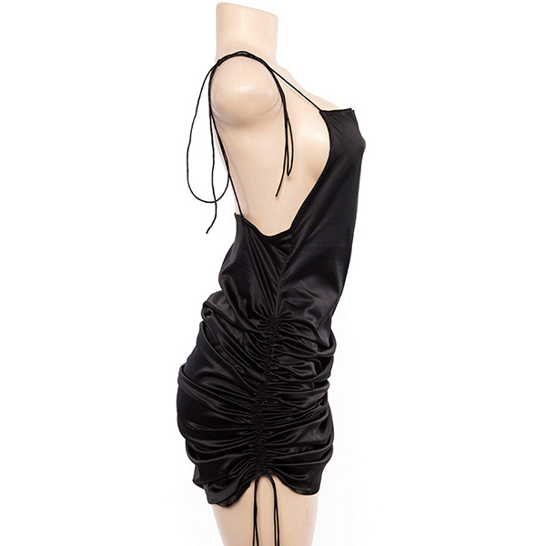 Sexy Backless Side-drawstring Solid Color Sling Dress