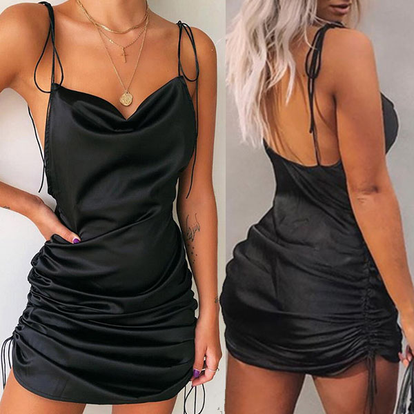 Outfitted with the features of sexy and charming,this dress is sure to help you gain more eyes. Sling style,with backless and side-drawstring design,sexy yet distinctive. Dress it up with your sexy heels for your night events,you would look alluring enough!