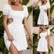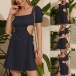 Sexy Backless Side Hollow Out Short Sleeve Square Collar Solid Color Dress