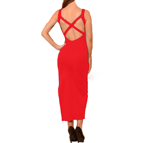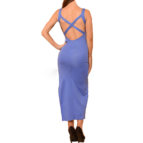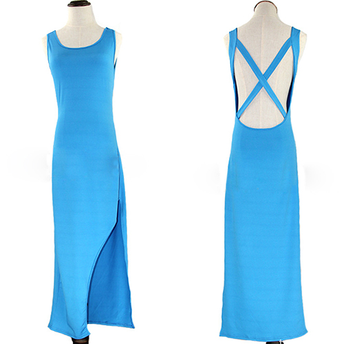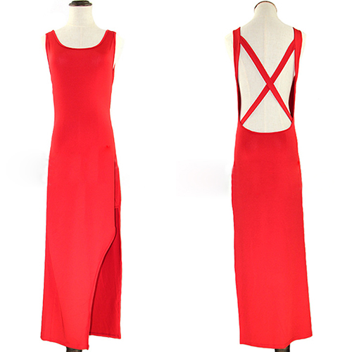 Show off your sexy flavor and charming sense via this dress. Its backless and side slit hem design