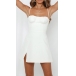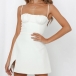 This effortless flirty dress is perfect for any last-minute invitation. The pure while tone design makes this piece look simple yet generous. Sling style,with backless,side slit hem and a super fit silhouette,this dress is sure to display your alluring side as well as your seductive curve.