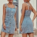 Sexy Backless Single-breasted Slim Fit Sling Denim Dress
