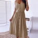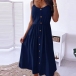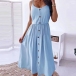 Sexy Backless Single-breasted Solid Color High Waist Sling Dress