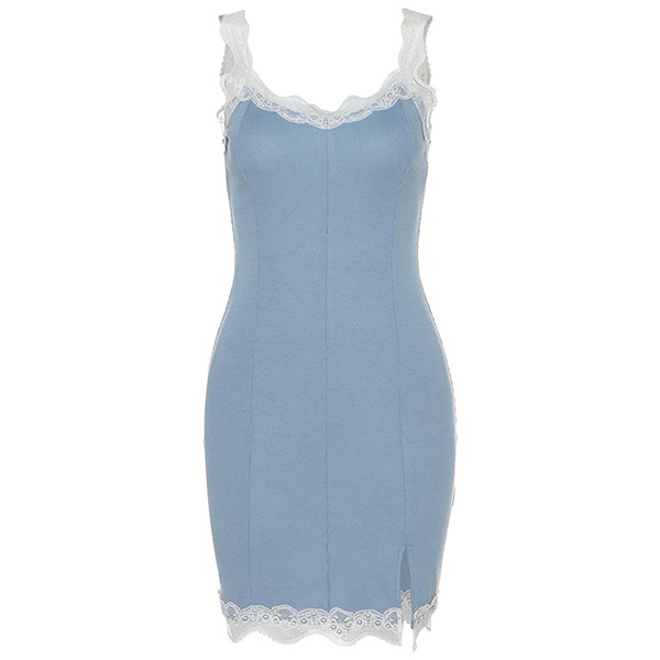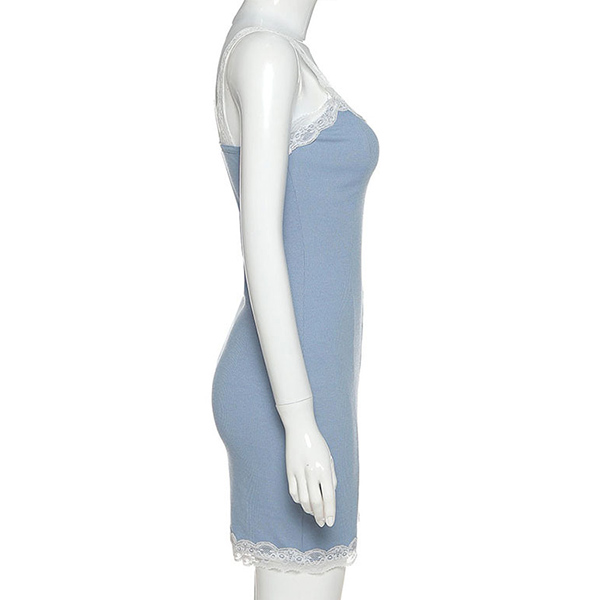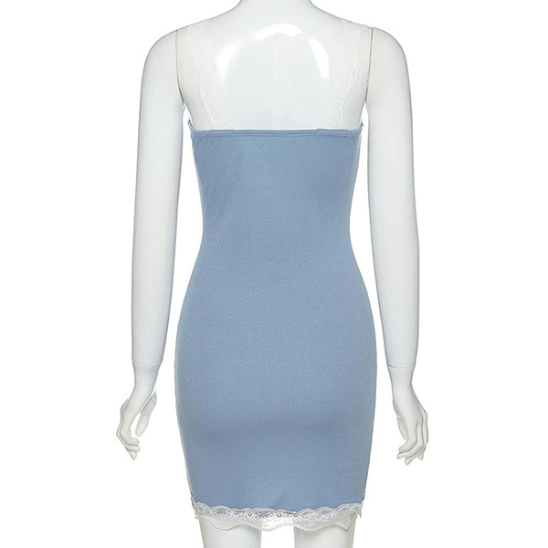 Sexy Backless Sit Hem Lace Spliced Slim Fit Sling Dress