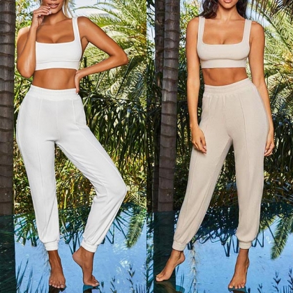 Your sexy and seductive curve can have a full display in this two-piece set. Solid color style,including a sleeveless backless crop top and a high waist pants,this two-piece set can exude your sexy and flirty vibes. Don't be shy,just slip into this two-piece set to express yourself.