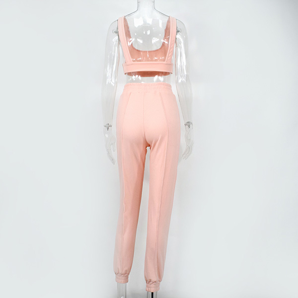 Sexy Backless Sleeveless Crop Top + High Waist Pants Two-piece Set