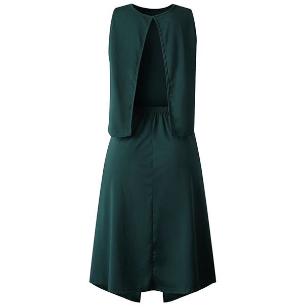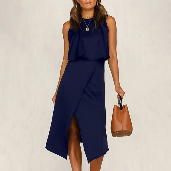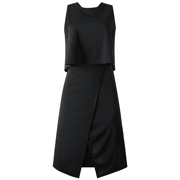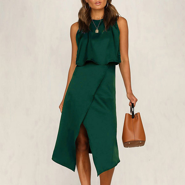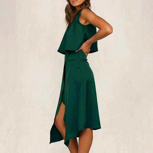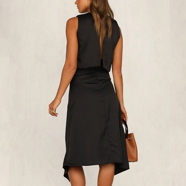 Add a dash of sexy and flirty vibes to your wardrobe with this two-piece set. Solid color style,including a backless sleeveless crop top and a high waist slit hem skirt,this two-piece set is sure to express your beautiful and feminine side. When you have no time to do your matching,this two-piece set can be a perfect solution.