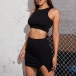 Sexy Backless Sleeveless Crop Top + Slit Hem Skirt Two-piece Set