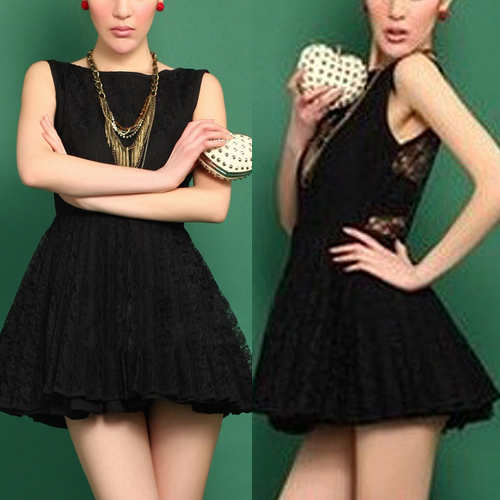 Sexy Backless Sleeveless High Waist Lace Mini Dress