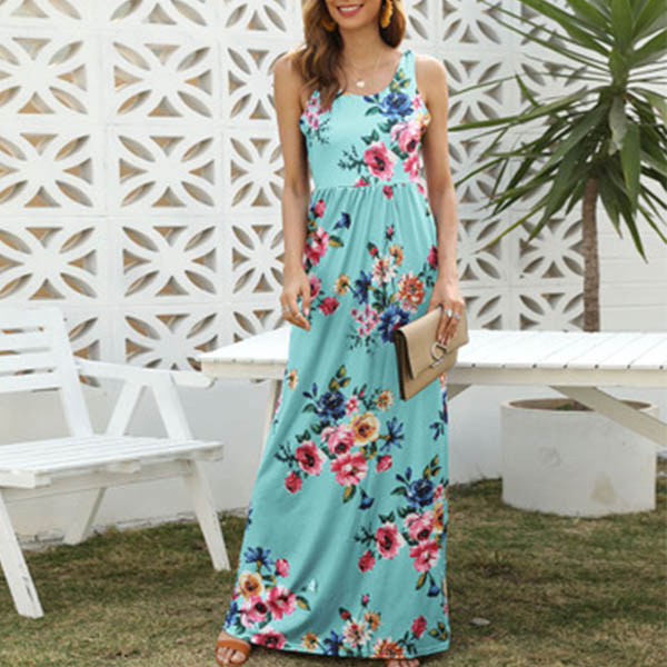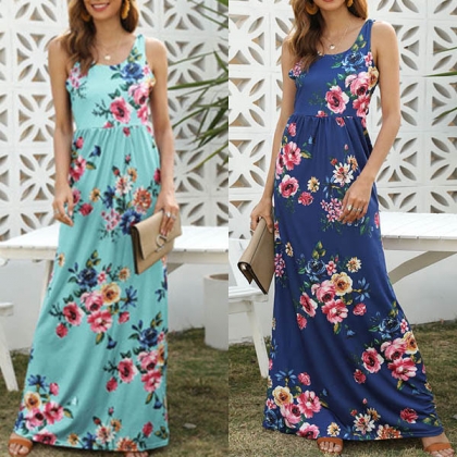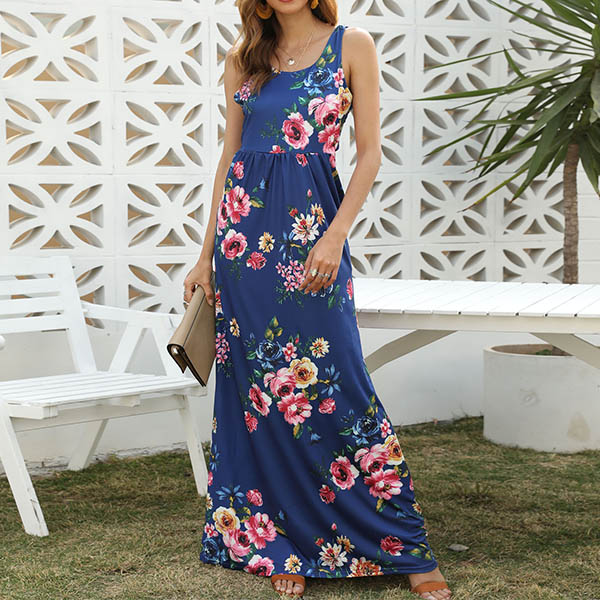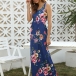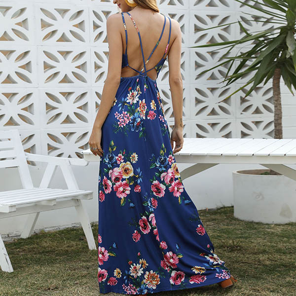 Sexy Backless Sleeveless High Waist Printed Maxi Dress