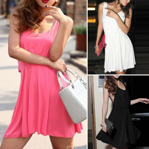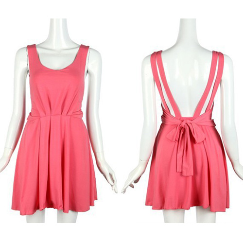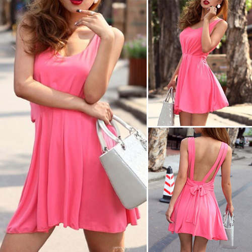 Start your sweet and romantic date night with this dress. Solid color style,its backless design makes it
