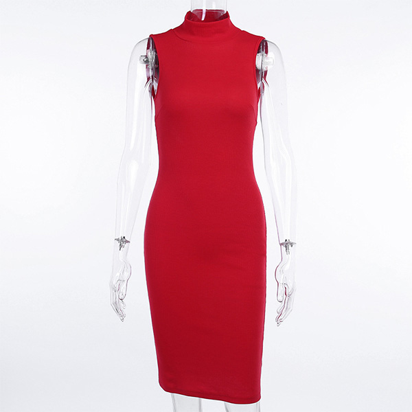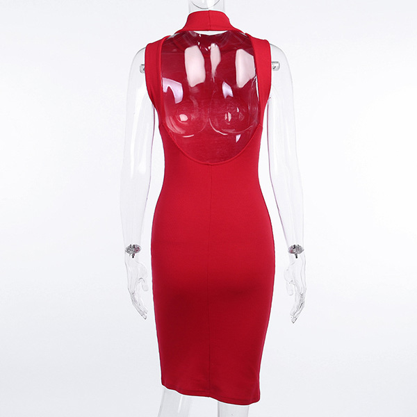 Sexy Backless Sleeveless Mock Neck Solid Color Slim Fit Dress(It runs small)