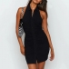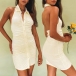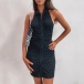 Sexy Backless Sleeveless POLO Collar Solid Color Slim Fit Dress