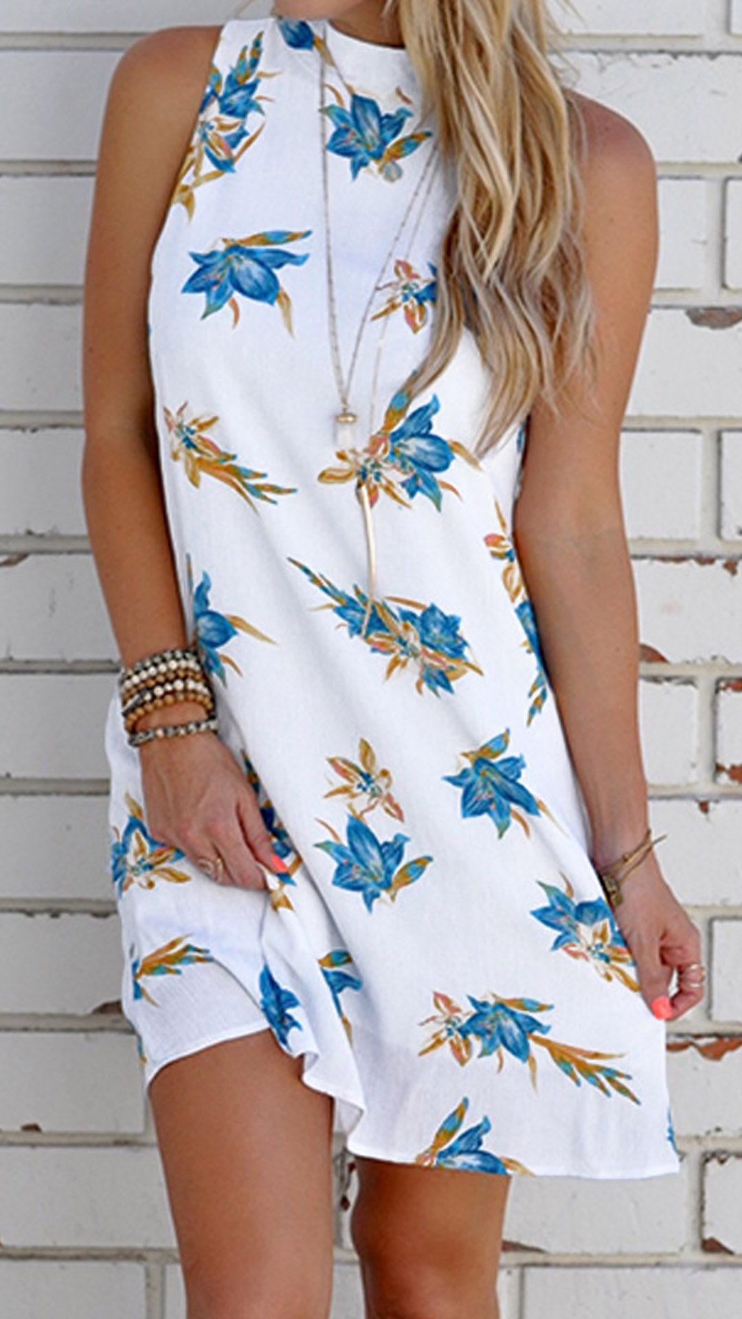 It is a good chance to update your summer wardrobe with the help of this dress. The backless design and chic printed details can help you catch more eyes. Finished with sleeveless,round neck and a loose silhouette,this dress also can ensure you a comfortable day. So why not take interest in it?