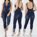 Update your wardrobe ensemble with a different style piece such as this sleeveless denim jumpsuit. Backless design