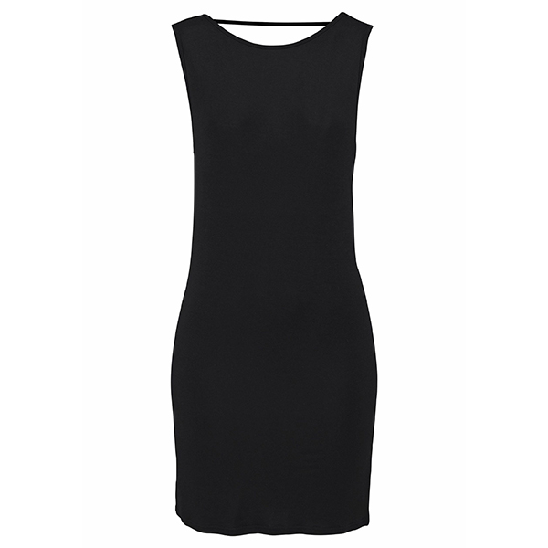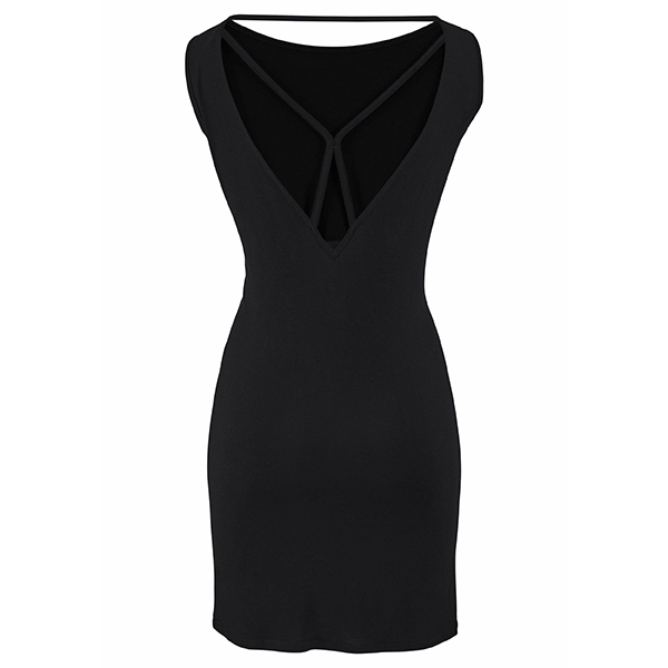 Thanks to the flattering black tone and fit silhouette design,your slender figure can have a full display in this dress. Finished with sleeveless,round neck and backless design,this dress can keep the comfy while it offers you an alluring look. You can express your beauty and femininity via this little piece.