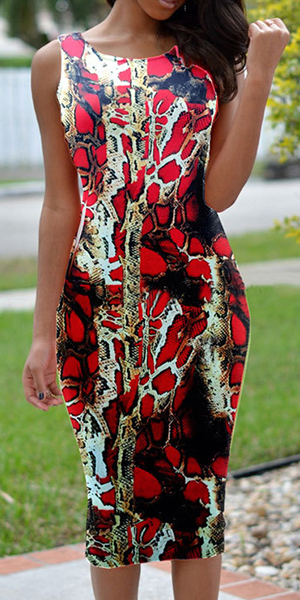 Show off your figure and just enough skin in this bodycon dress. With an eye-catching printed pattern