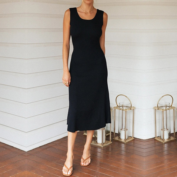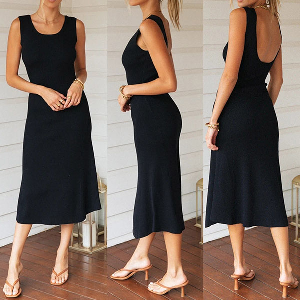 You have no need to worry about what to wear for your dinner dates if you have this dress in your team. It comes with a flattering black tone,finished with sleeveless,round neck and backless design,this dress is a good weapon to express your beauty and femininity.