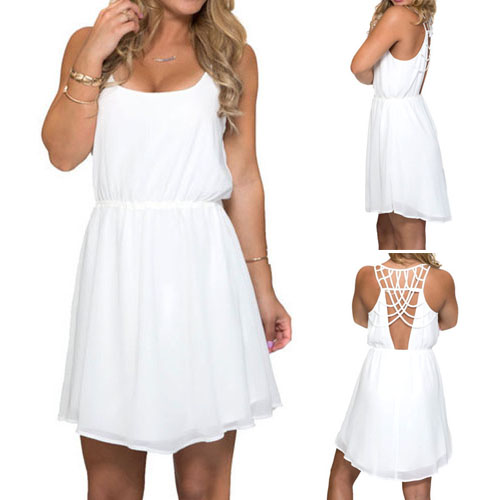 round neck,backless and an elastic waist,this dress can give you a cool summer.