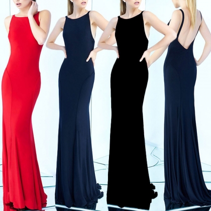 Every girl needs a sexy and feminine dress in her closet to take her to fancy events like wedding receptions and holiday parties, and this pretty number will do exactly that! This fishtail dress comes with a flattering black tone,with sleeveless,round neck and backless design,which can easily make you stand out in the crowd!