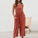Sexy Backless Sleeveless Round Neck Solid Color Jumpsuit