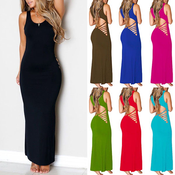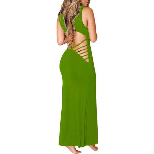 Sexy Backless Sleeveless Round Neck Solid Color Party Dress