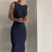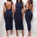 Sexy Backless Sleeveless Round Neck Solid Color Tight Dress