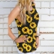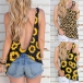 Sexy Backless Sleeveless Round Neck Sunflower Printed Top