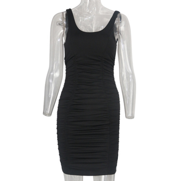 The best way to amplify your perfect curve is with a tight dress such as this creation. It boasts a solid color,backless design will make you look sexier,while the wrinkled details will further enhance its charm. For your night events,this little stunner is a good choice.
