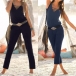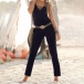 Sexy Backless Sleeveless V-neck High Waist Solid Color Jumpsuit (Without belt)