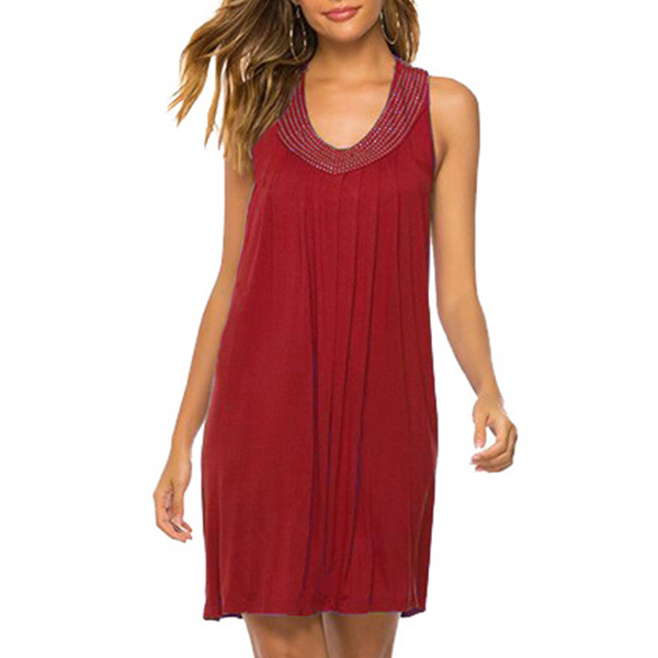 When you have this dress in your team,you can easily win more eyes. Halter and backless design will offer you a more alluring,while the rhinestone spliced details will help you gain more eyes. For these sun-soaked summer days,this dress would be your wise choice.