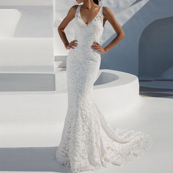 Create a sassy look with the flirty details of this lace dress.It is finished with backless and v-neck design,