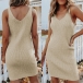 Sexy Backless Sleeveless V-neck Solid Color Slim Fit Knit Dress