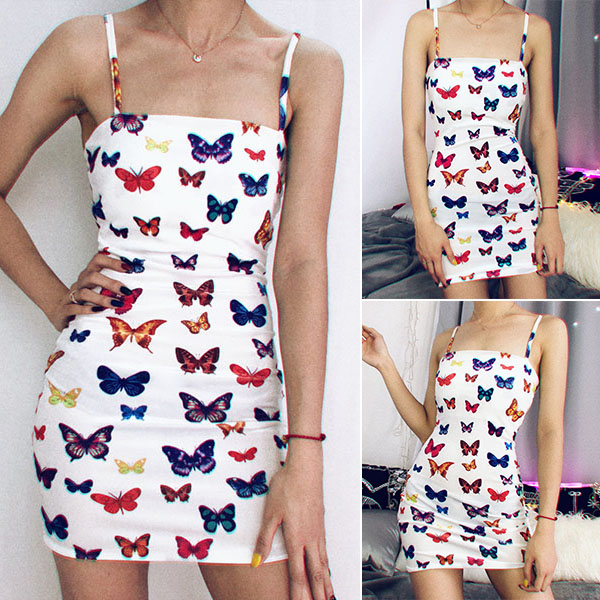 Sexy Backless Slim Fit Butterfly Printed Sling Dress