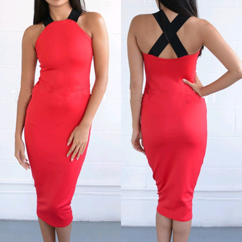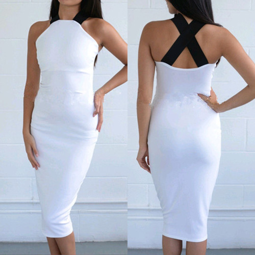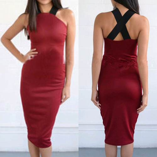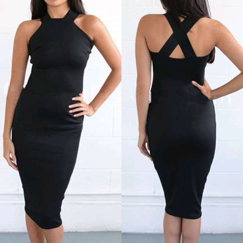 Elevate your look instantly with this dress. Crossover halter style,with a figure-flattering silhouette