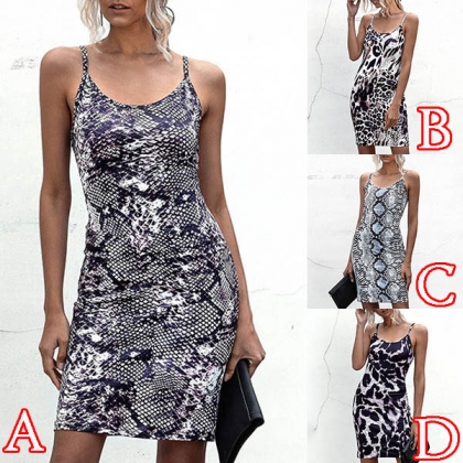 Sexy Backless Slim Fit Leopard/Serpentine Printed Sling Dress