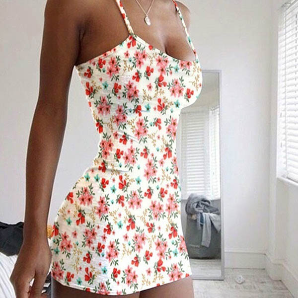 Seductive appeal can come easily once you slip into this stunning dress. Sling style,with backless and a fit silhouette,this dress can exude your charming feminine appeal as well as showcase your slender figure. Moreover,the vibrant floral print details will make this piece look more eye-catching. So why not slip into this piece to express your beauty and charm?