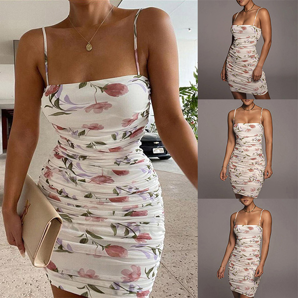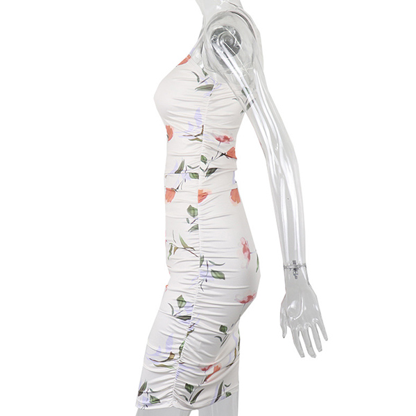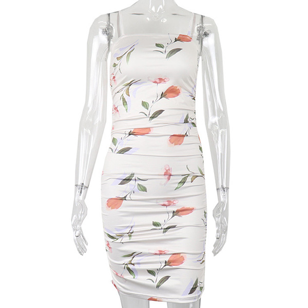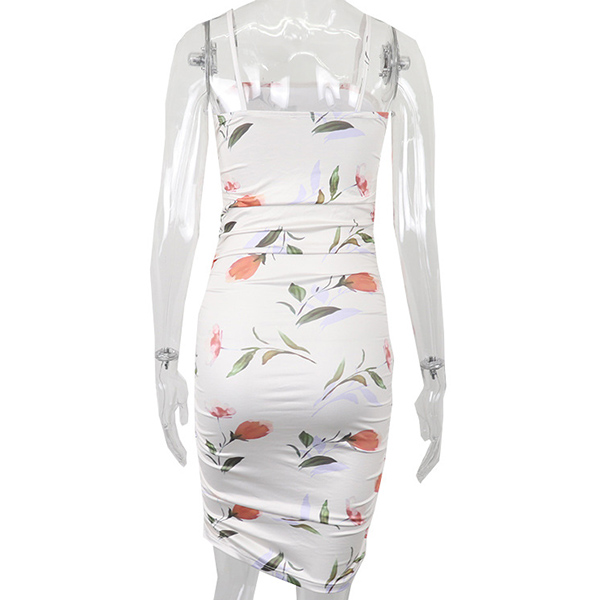 Sexy Backless Slim Fit Sling Printed Wrinkled Dress