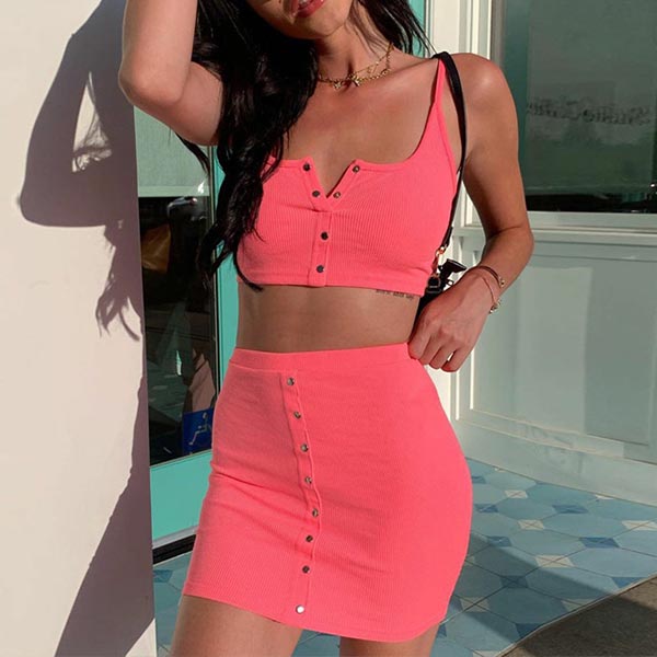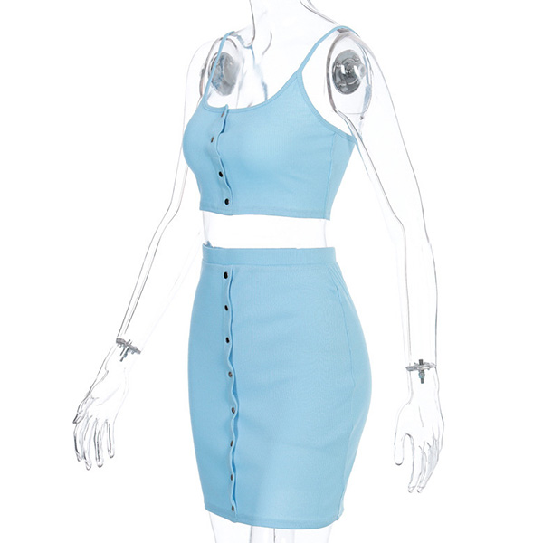 You can easily achieve for a sexy and flirty weekend look when you dress yourself up with this two-piece set. Solid color style,including a backless sling crop top and a high waist skirt,this two-piece set can flaunt off your seductive curve while it exudes your charming feminine appeal.