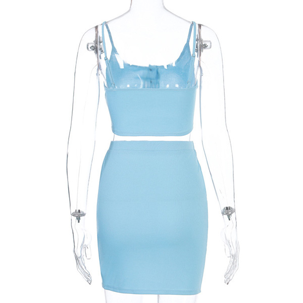 Sexy Backless Sling Crop Top + Skirt Two-piece Set