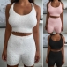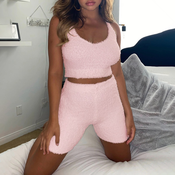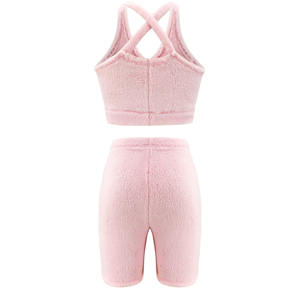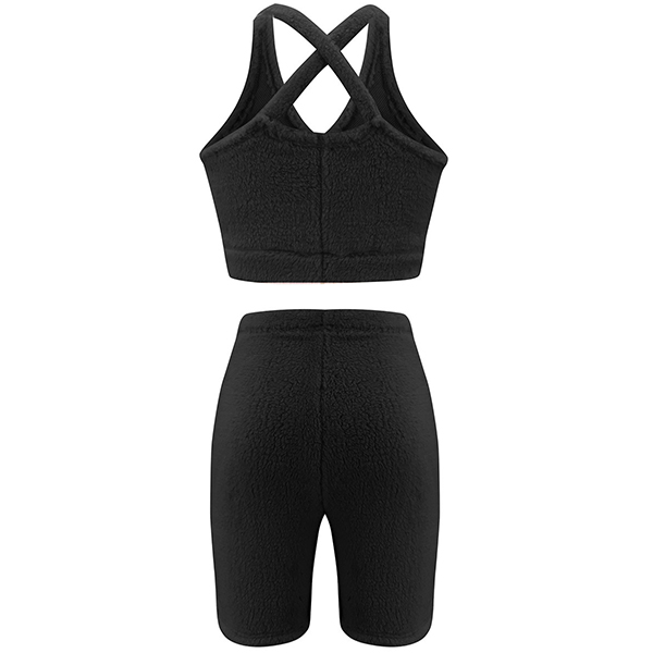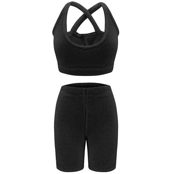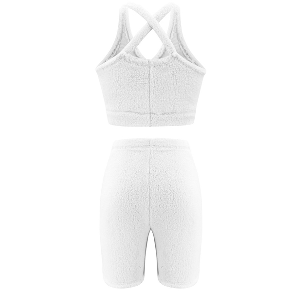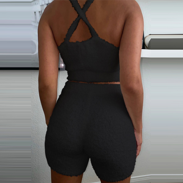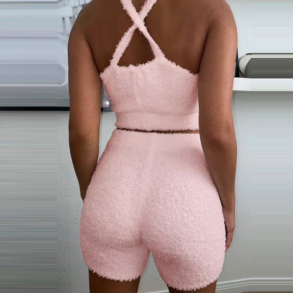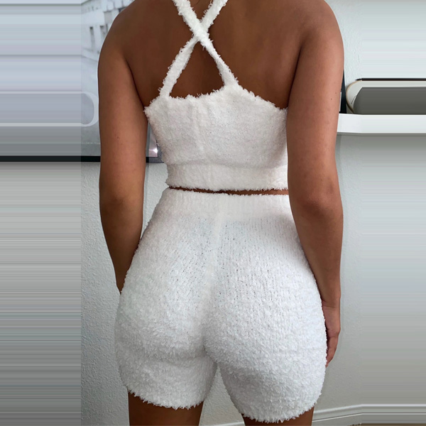Sexy Backless Sling Plush Crop Top + High Waist Shorts Two-piece Set