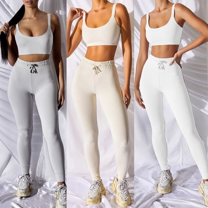 Sexy Backless Sling Sports Tank Top + High Waist Leggings Sports Two-piece Set