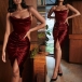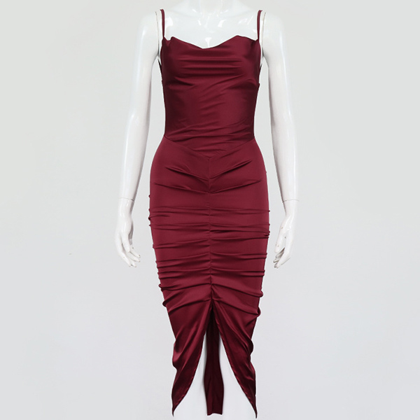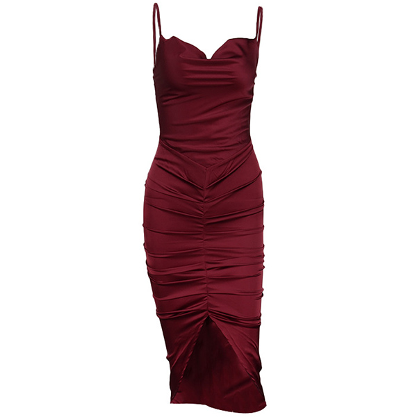 Outfitted with the features of sexy and charming and rendered into a more flattering and feminine design, this dress is the key to an effortlessly chic and sultry look. Sling style,the backless,slit hem and cowl neck design make this piece look so sexy and alluring. So why not save this little stunner for your fancy events?